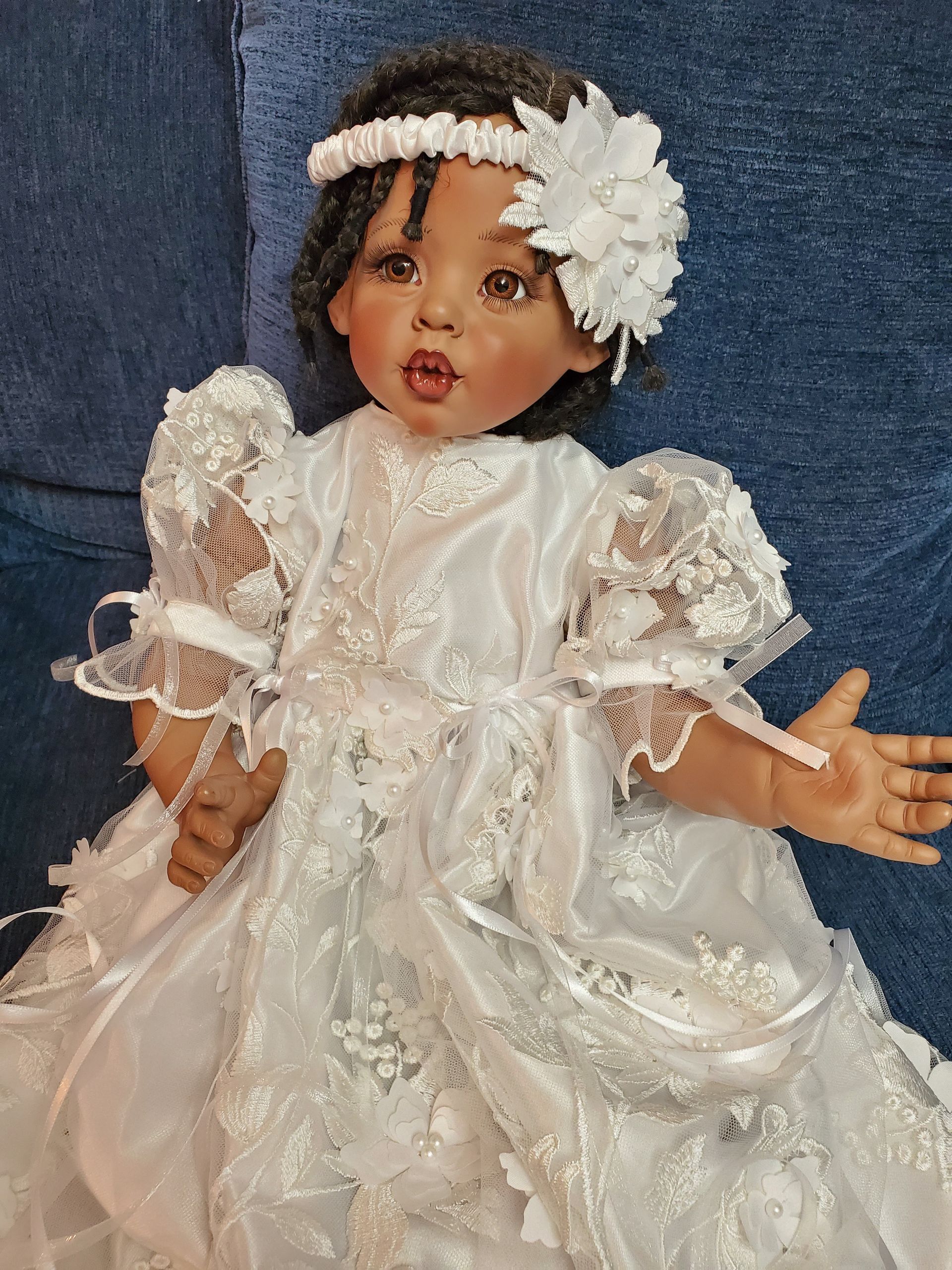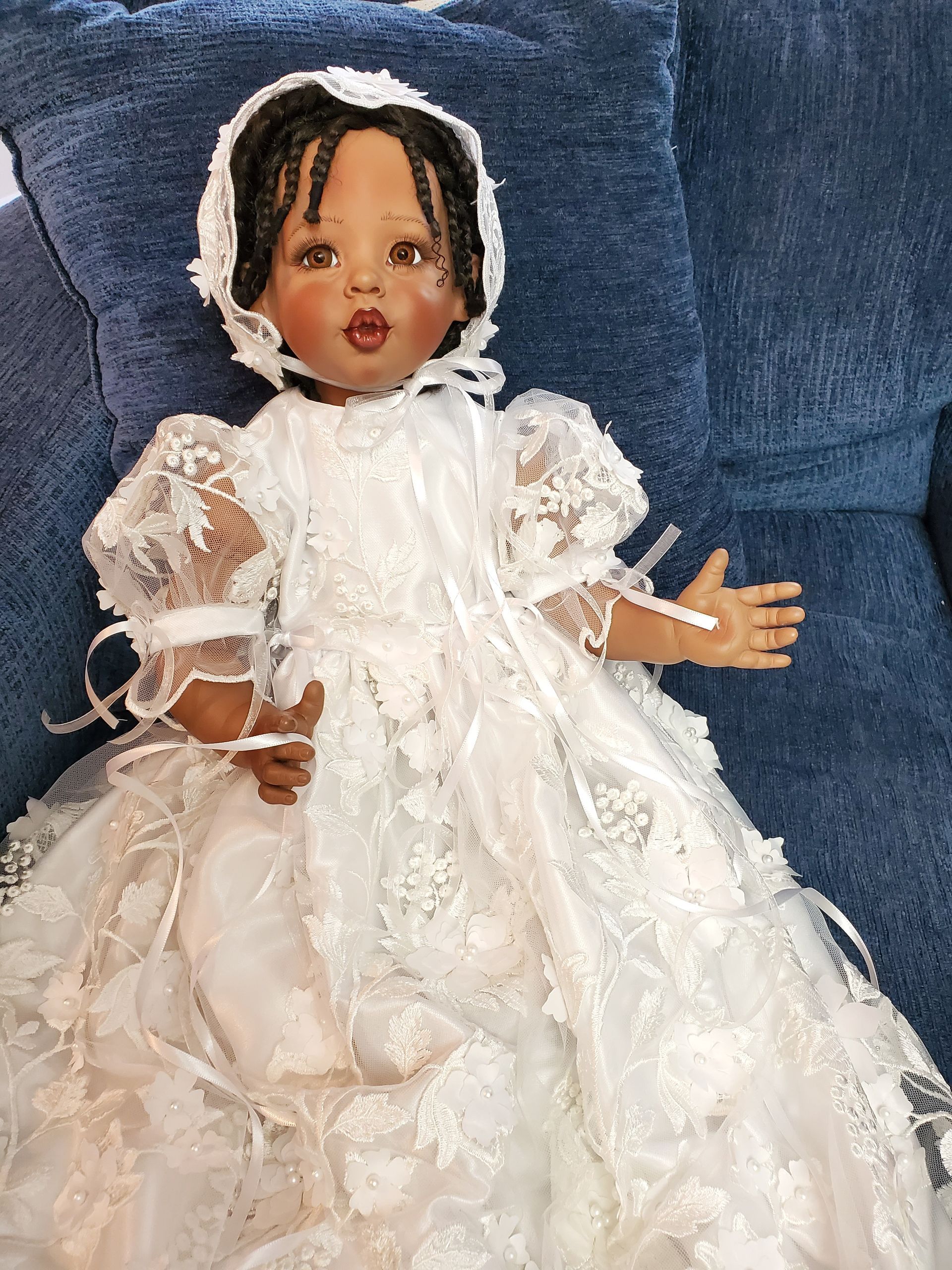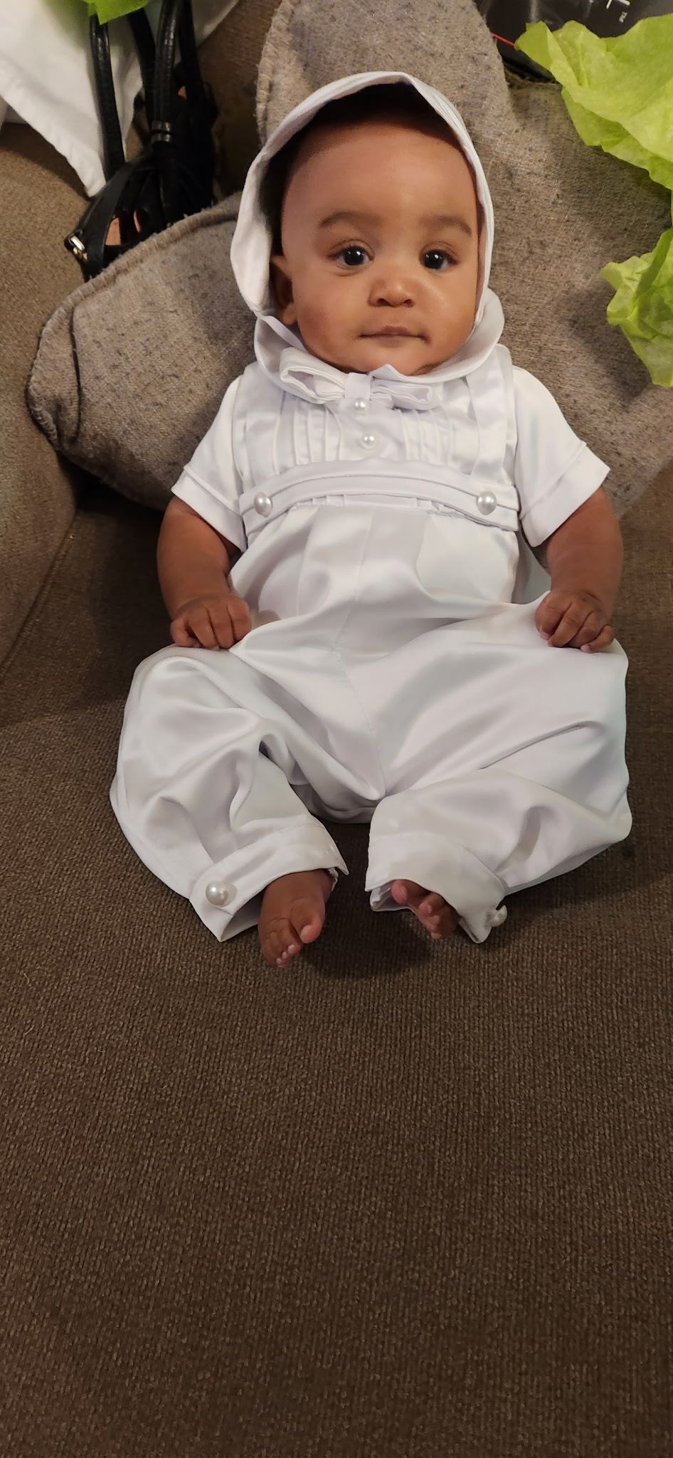For baby boys, our dapper Christening outfits feature a smartly tailored vest, coordinating shirt, and a charming necktie. Crisp white pants and a matching hat complete the look, ensuring he’s dressed to perfection for this once-in-a-lifetime moment.